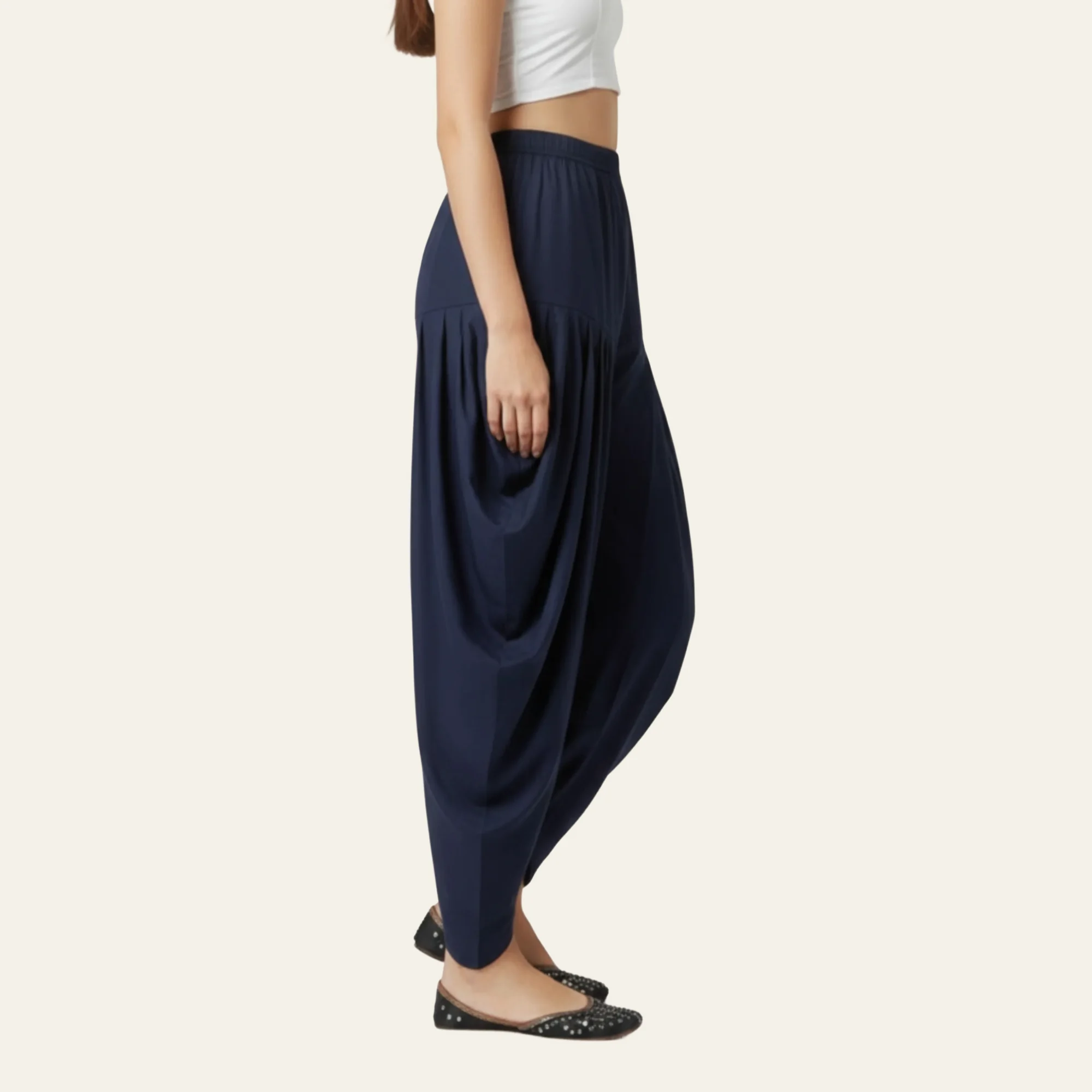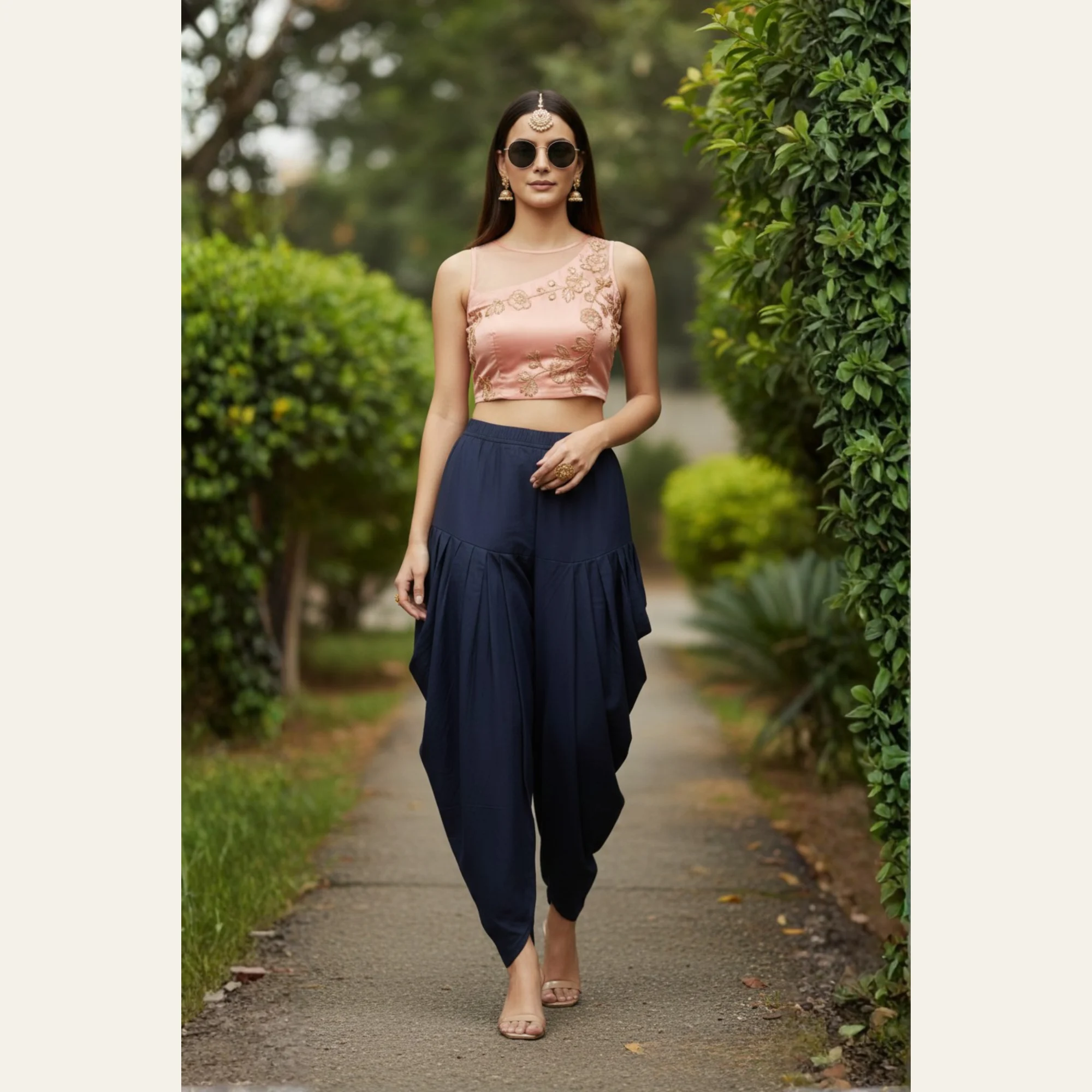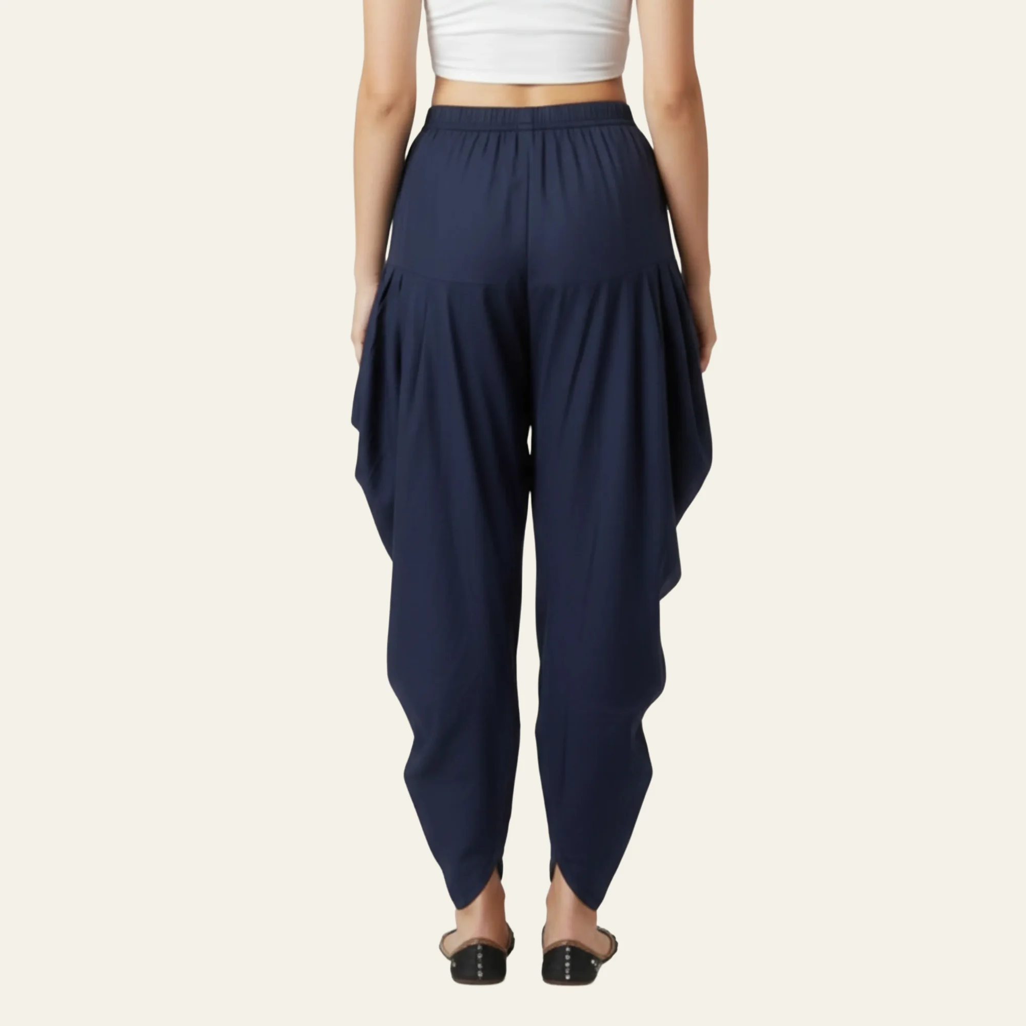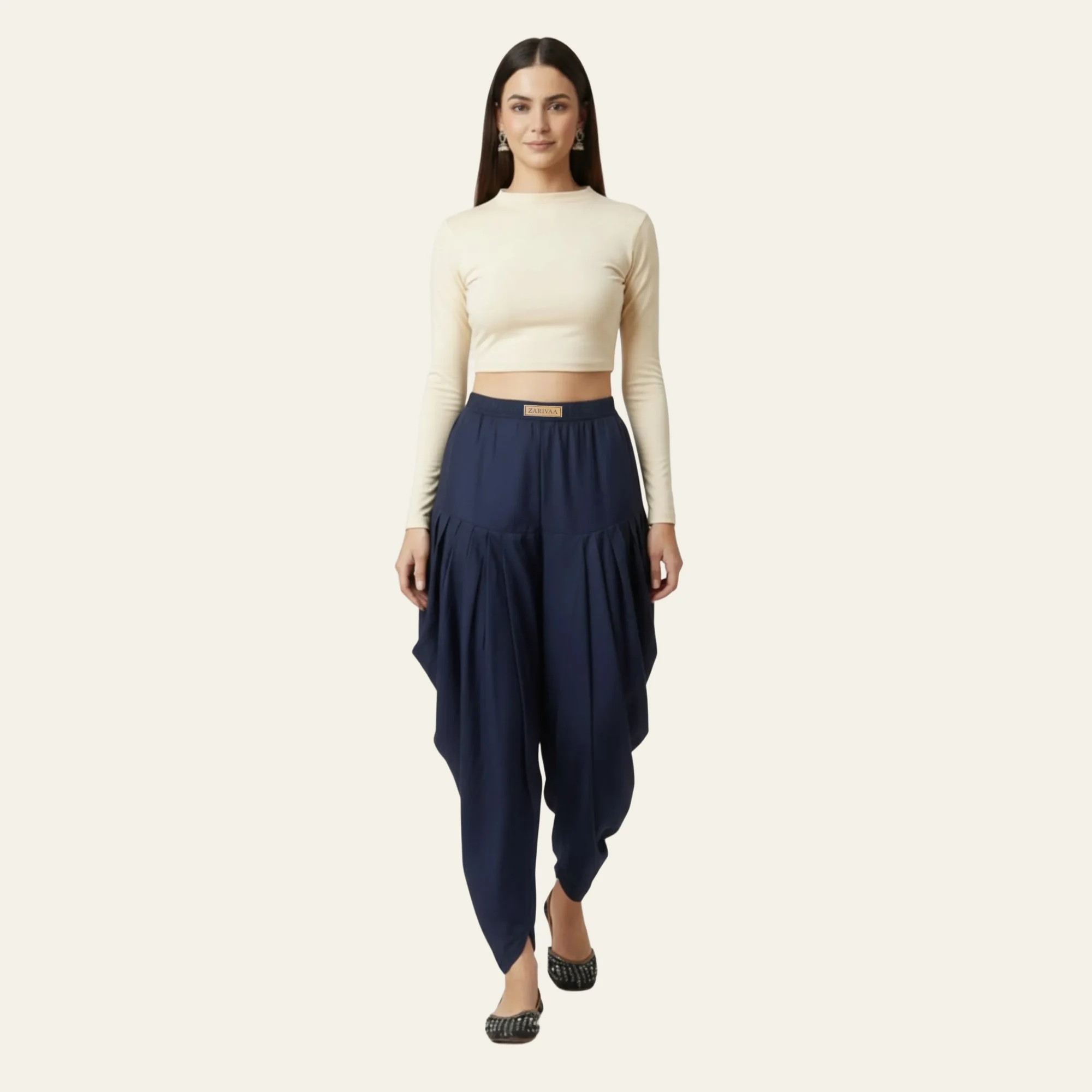 These elegant dhoti pants from ZARIVAA offer the perfect blend of traditional Indian style and contemporary comfort. Crafted from premium Cotton -Rayon Blend fabric, these Indo-Western pants feature a distinctive draped silhouette that captures the essence of classic dhoti styling whilst providing modern versatility. The mid-rise design with pleated draping creates a flattering, relaxed fit that’s ideal for multiple occasions – from yoga sessions and casual outings to office wear and ethnic celebrations. The stretchable fabric ensures exceptional comfort and freedom of movement throughout the day. With a free size design accommodating waist measurements from 66 to 107 centimetres, these pants suit various body types. The drawstring closure provides a secure, adjustable fit, whilst the full-length trouser-style legs offer a sophisticated look. Weighing just 250 grammes, these lightweight pants are perfect for all-season wear. Style them with a crop top for a trendy appearance, pair with a kurta for traditional charm, or combine with a blazer for smart-casual elegance. Machine washable for easy maintenance, these versatile dhoti pants are an essential addition to any modern woman’s wardrobe.
