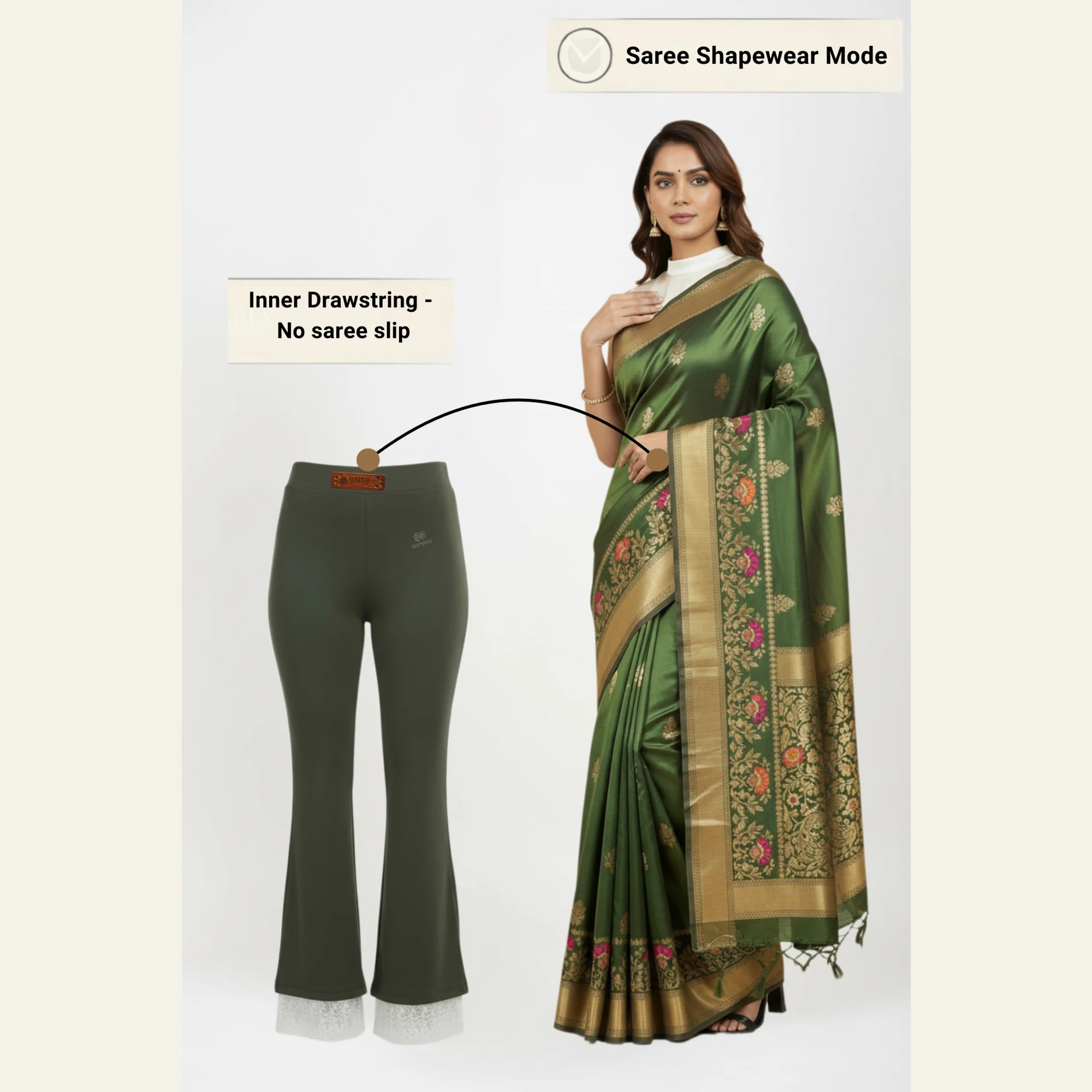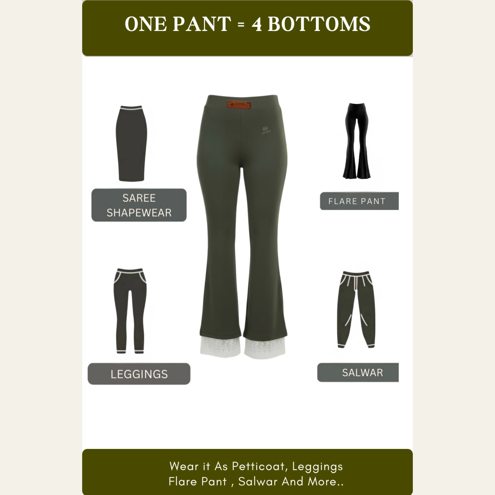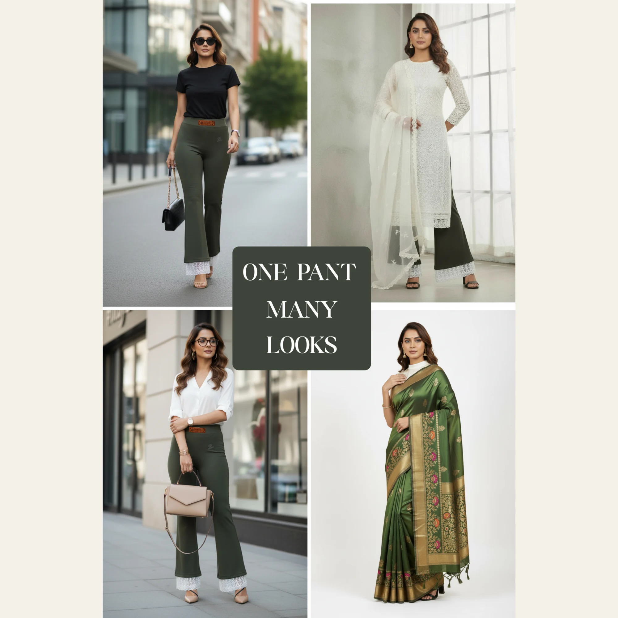 • One Pant, Many Uses. You can wear it as Saree shapewear, Yoga pant, Office trouser, Travel wear, Daily casual bottom. Just change your top or saree — not the pant!
